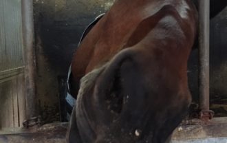 詳細を見る6日は引き馬運動でお休みの日でした。 ちょうど写真を撮ろうと思ったのでカメラを向けたら鼻ドアップ! 離れたのでベストショットを撮ろうと思ったら次は引き馬をしていたグルー…