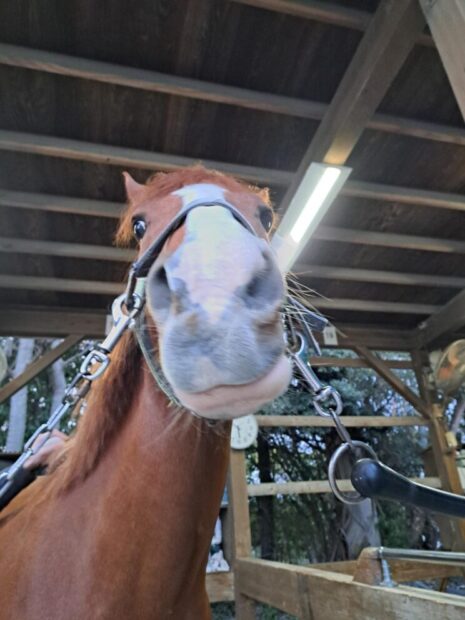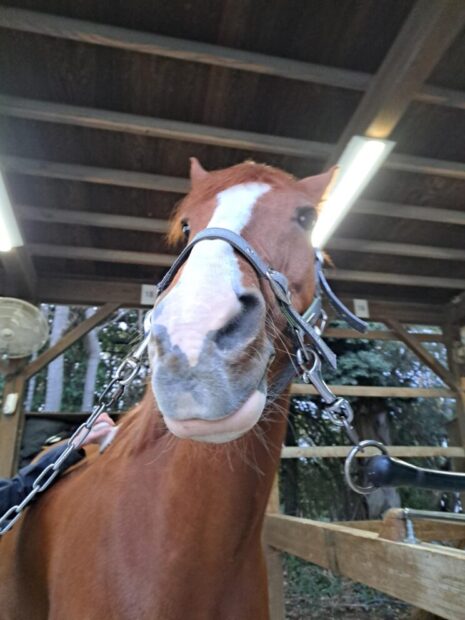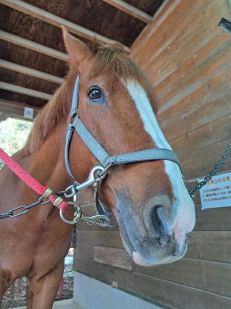 | 性格は至って温厚。 体験乗馬もできるくらい大人しいです。 少しボーとしているようにも見えますが・・・。(笑) ですが乗り心地は非常に良いです。 反動がなく、体も口も柔らかく乗りやすいです。 外馬場レッスンデビューも果たしこれからが楽しみです。 |