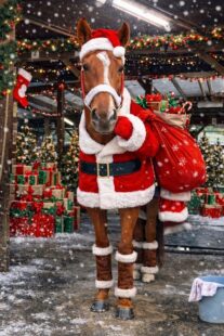 会員様のお出かけ用の頭絡をつけた赤兎。