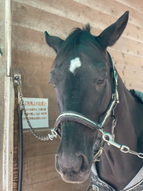 | 2020年4月12日に明石にやってきた新人さんです。 競走馬名がラガーマンと厳つい名前ですが、見た目は可愛らしく大人しい馬です。 青鹿毛と明石では珍しい毛色で、すでに会員様を魅了しております。 これからしっかりとトレーニングを積んでレッスンデビューを目指します!! |