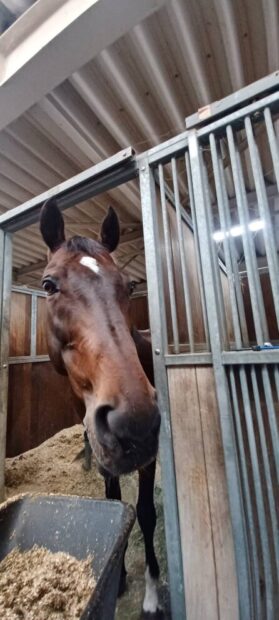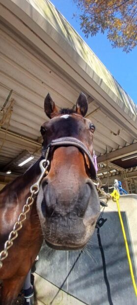 | 2020年7月にARAに入厩したばかりです。競走馬時代の戦績は9戦2勝2着2回と、なかなかの好成績でした。 あのJRAの現役女性ジョッキー「藤田菜七子」騎手を鞍上に1勝をあげています!今のところわかっている性格は非常に真面目で、扶助に対しての反応も非常に良いです。反面、慌ててしまうところもあり熱くなりやすいとも言えるので、現在はレッスンの多頭数の中でも、慌てたりしないようにトレーニング中です。出来る限り、今の前進気勢を持ったまま落ち着いて動ける会有馬になってもらえることが目標です。 洗蹄所ではとても大人しく、馬装も手入れもお利口さんです(^^♪ 見かけたら、声をかけてあげてくださいね! |