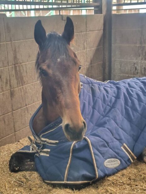 | 入厩して乗馬へのリトレーニングを始めて2か月が経とうとしています。私自身30年以上、引退競走馬のリトレーニングをしてきて今まで色々な馬に携わってきました。その中でもヴェンチュラムーンはかなり扱いやすい部類に入ると思います。まずリトレーニングを開始する前に、対象馬の性格や歩様、体の使い方等を 観察し、その馬が障害に適しているのか?それとも馬場なのか?それとも普及に向いているのか?など適性にあった方向のトレーニングをしていくことになります。もちろん途中で、変更する場合は多々あり、常に馬を良く観察してあげることが大切だと私は考えています。ヴェンチュラムーンは障害の適性があり、素直に障害に向かっていくので現在は障害馬の方向でトレーニングしています。といっても障害をたくさん飛ぶのではなく、まずは馬の頭の構造を変えてあげる事、体の使い方を教え筋力を鍛えることを行っています。この基礎的なトレ―ニングを怠ると、故障したりしやすくなるので今は常歩⇔速歩⇔駈歩の移行を取り入れて後肢の筋力をつけている最中です。
