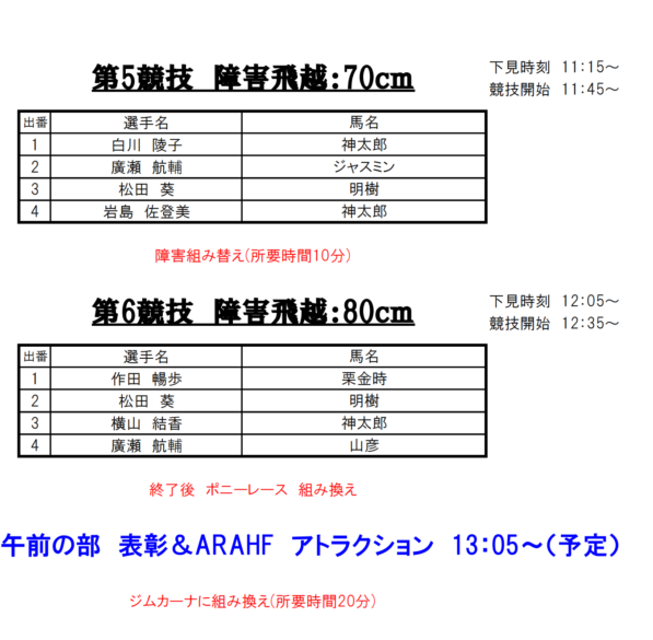 3月20日(金)に開催予定のARAホースフェスティバルにつきまして、出番表およびタイムテーブルを掲載いたしました。