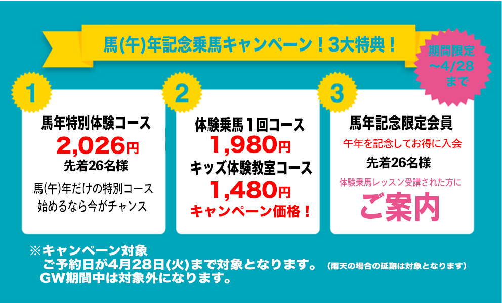 春の乗馬応援キャンペーンのお知らせ